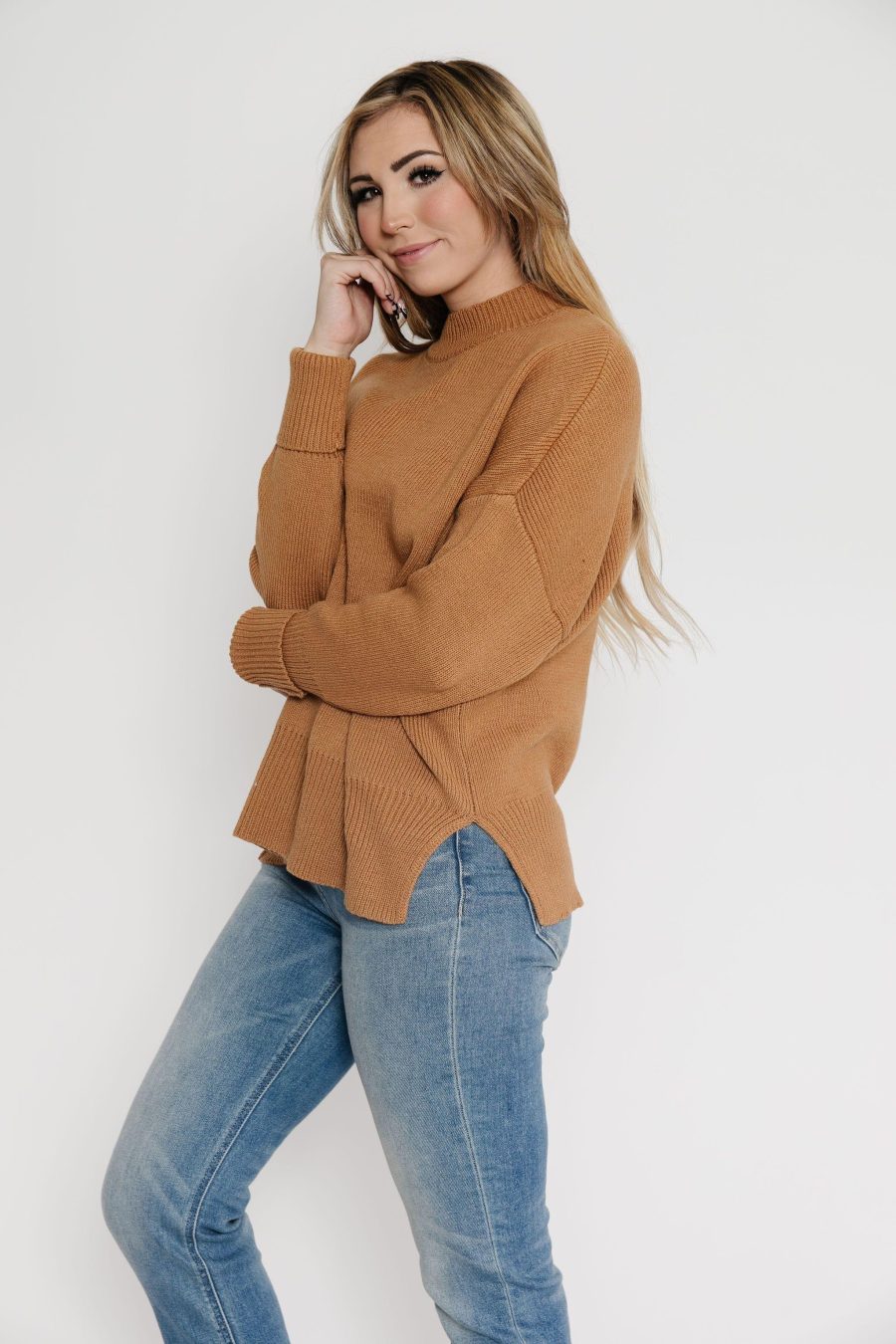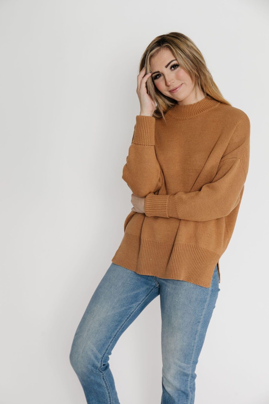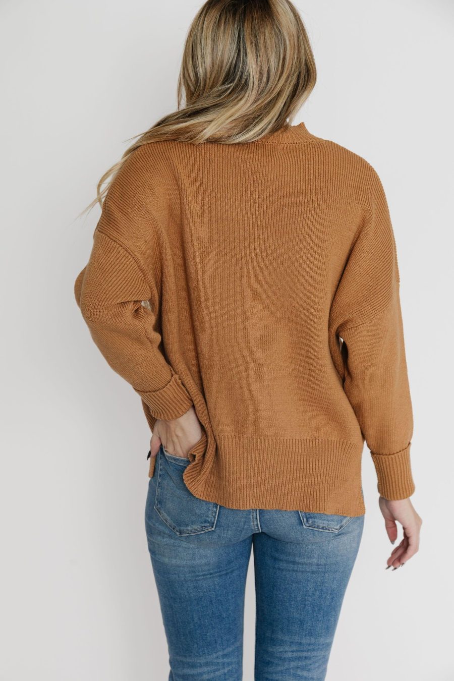Our Henry sweater reminds us of afternoon sports and cheering on your favorite team… whomever they may be. Slightly oversized and has a high neck with all over ribbing, and side slits.