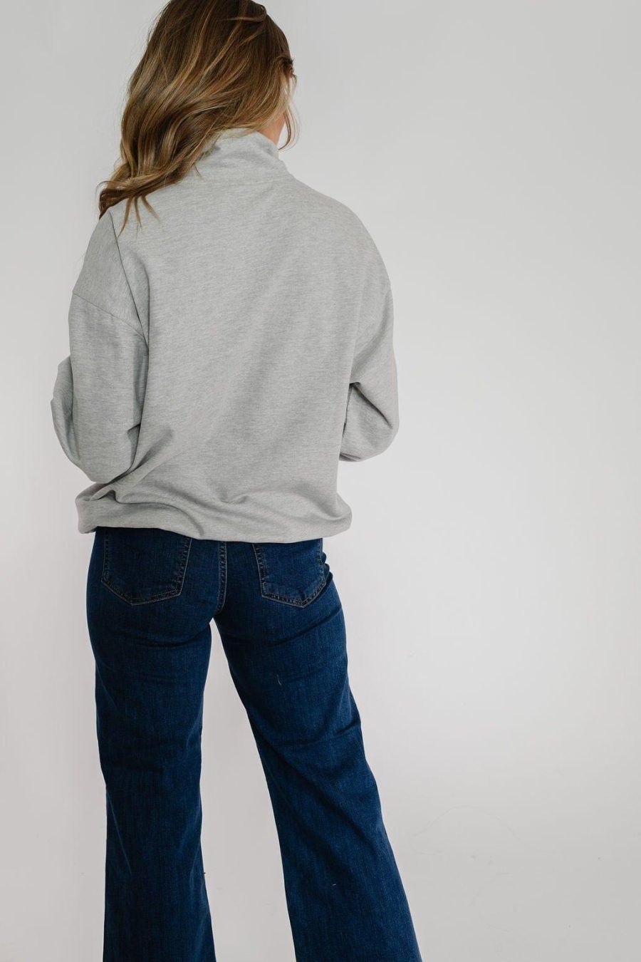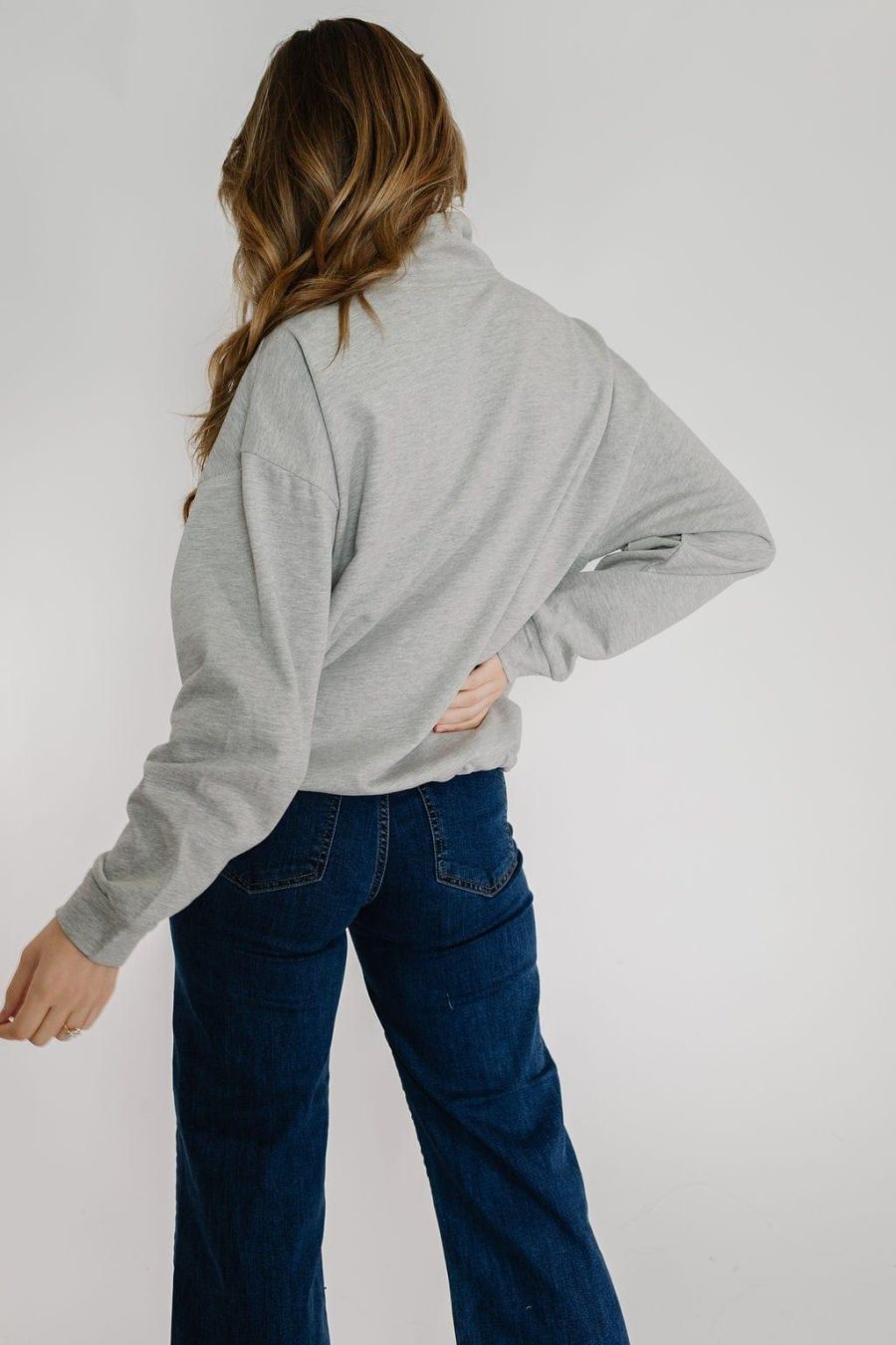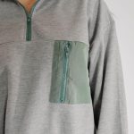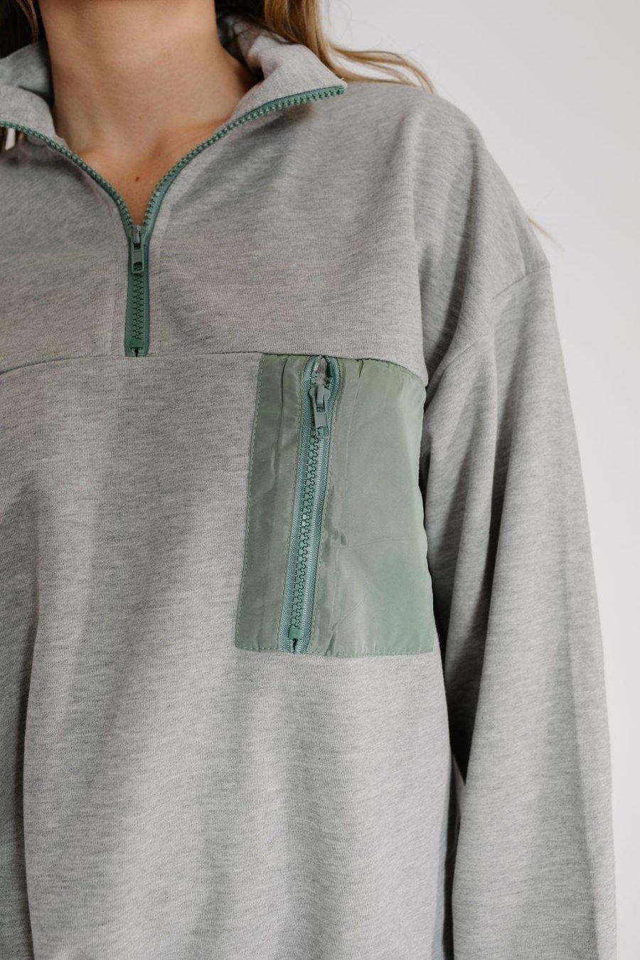 An easy, comfortable and soon to become favorite pullover lightweight jacket with a mock neck, dropped shoulder seams, partial zip front and contrast chest pocket with zipper. A drawstring at the waist adds to the silhouette of this relaxed, oversized pullover. Paired with our Scott denim